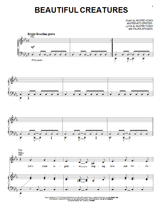 Download or print Barbatuques, Andy Garcia and Rita Moreno Beautiful Creatures (from Rio 2) sheet music, chords and digital score arranged for Piano, Vocal & Guitar Chords (Right-Hand Melody). This Film/TV score includes 7 page(s).