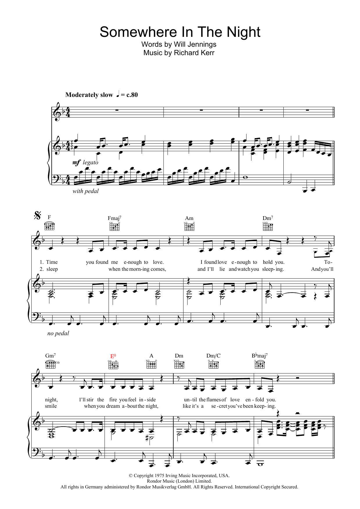 Quick facts Somewhere In The Night about digital sheet music