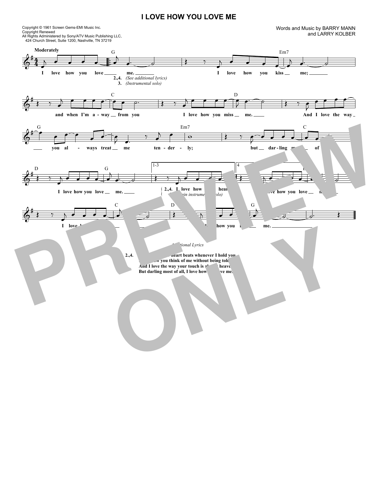 Download or print Barry Mann I Love How You Love Me sheet music, chords and digital score arranged for Lead Sheet / Fake Book. This Pop score includes 1 page(s).