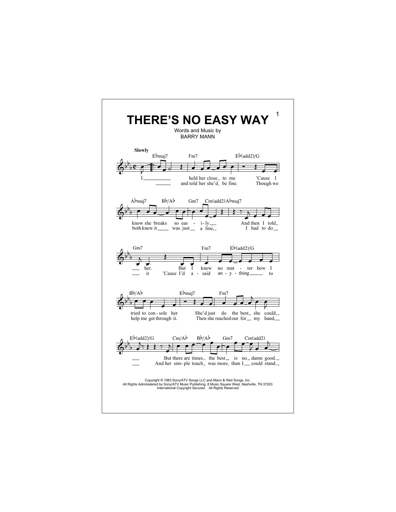 Download or print Barry Mann There's No Easy Way sheet music, chords and digital score arranged for Lead Sheet / Fake Book. This Pop score includes 4 page(s).