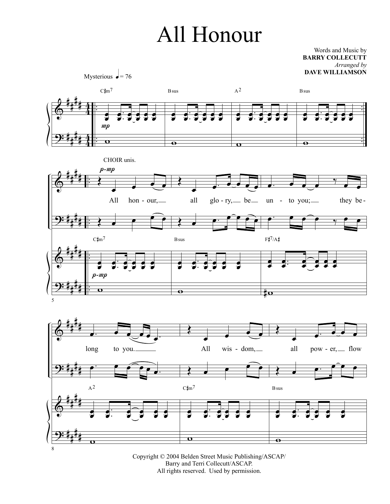Download or print Barry & Terri Collecutt All Honour (arr. Dave Williamson) sheet music, chords and digital score arranged for Piano & Vocal. This Christian score includes 10 page(s).