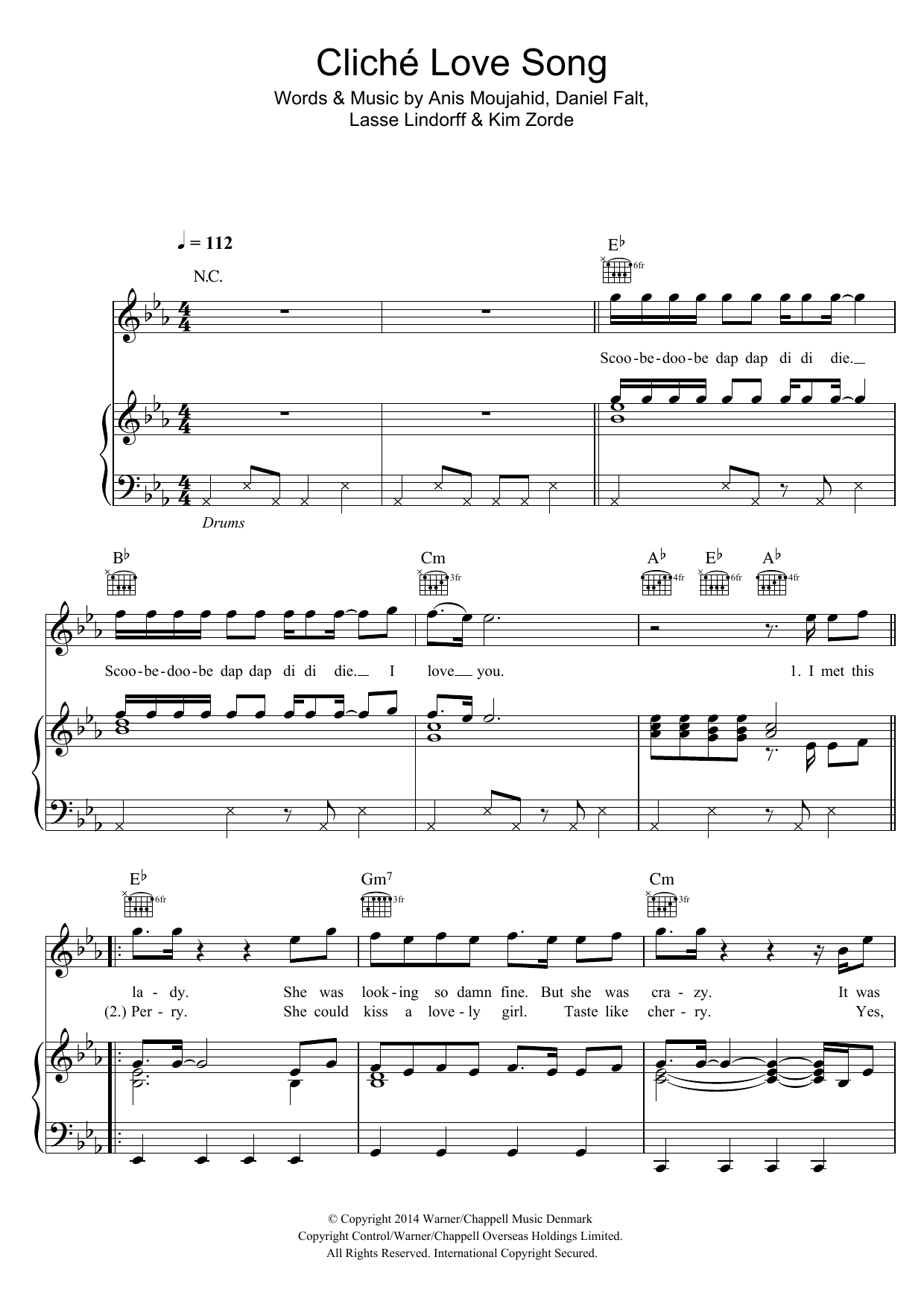 Download or print Basim Cliche Love Song sheet music, chords and digital score arranged for Piano, Vocal & Guitar Chords. This Pop score includes 5 page(s).