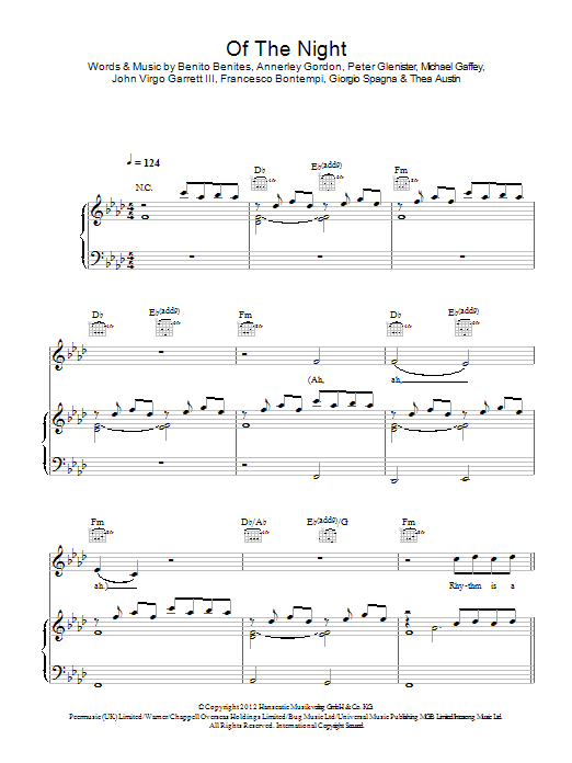 Download or print Bastille Of The Night sheet music, chords and digital score arranged for Piano, Vocal & Guitar Chords. This Pop score includes 6 page(s).