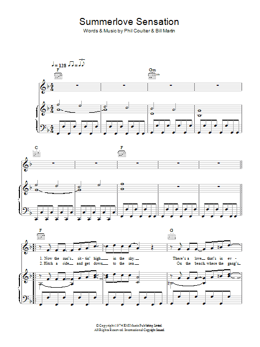 Download or print Bay City Rollers Summerlove Sensation sheet music, chords and digital score arranged for Piano, Vocal & Guitar Chords. This Pop score includes 6 page(s).