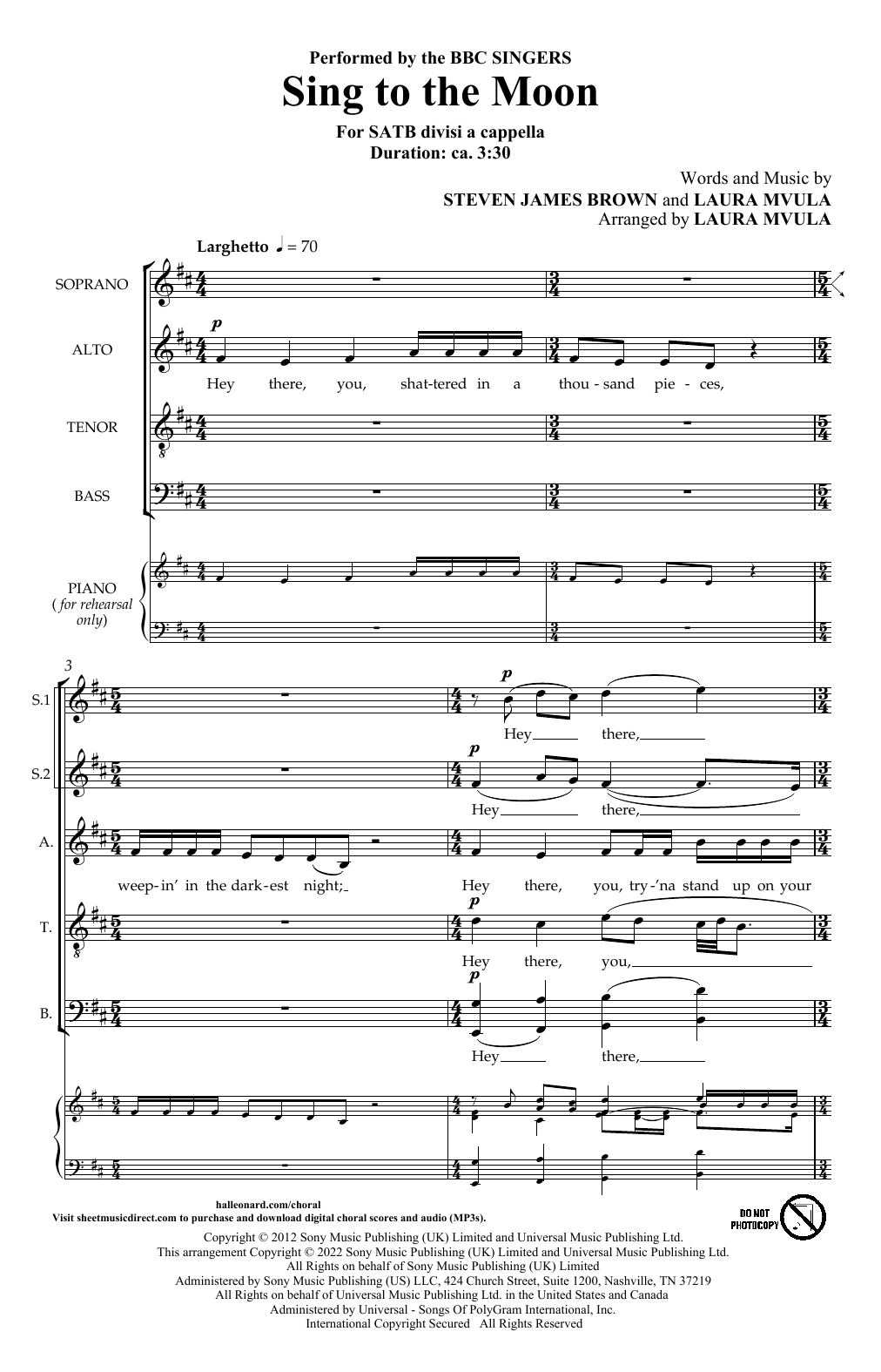 Download or print BBC Singers Sing To The Moon (arr. Laura Mvula) sheet music, chords and digital score arranged for Choir. This Pop score includes 11 page(s).