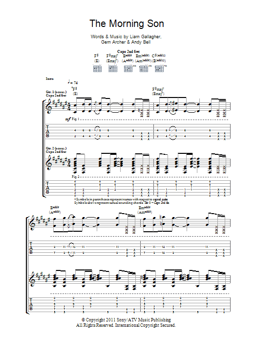 Download or print Beady Eye The Morning Son sheet music, chords and digital score arranged for Guitar Tab. This Rock score includes 6 page(s).