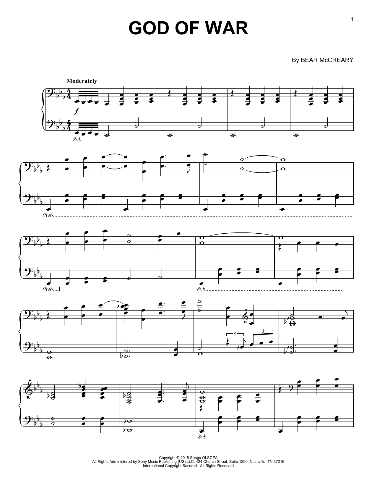 Download or print Bear McCreary God Of War sheet music, chords and digital score arranged for Piano Solo. This Video Game score includes 4 page(s).
