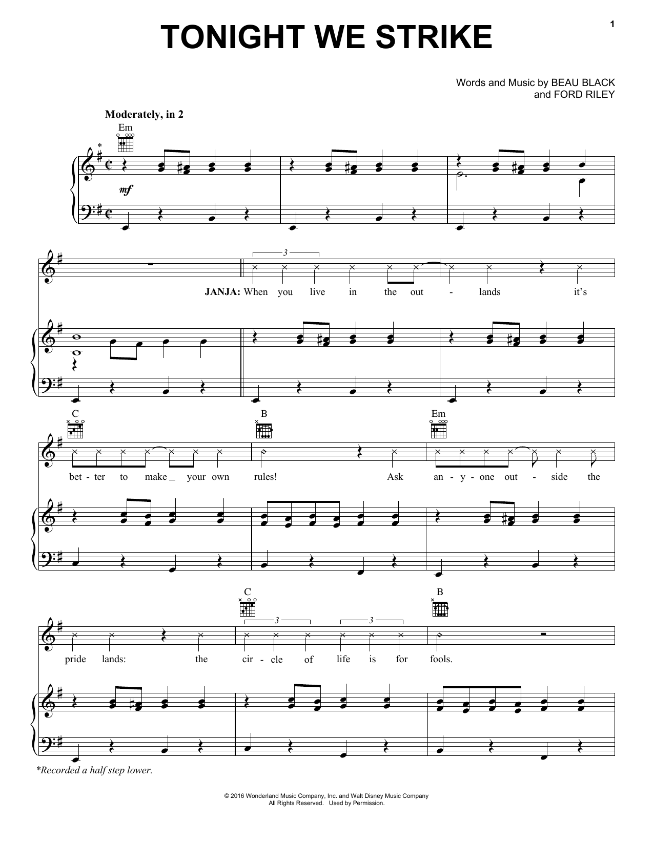 Download or print Ford Riley Tonight We Strike sheet music, chords and digital score arranged for Piano, Vocal & Guitar Chords (Right-Hand Melody). This Pop score includes 6 page(s).