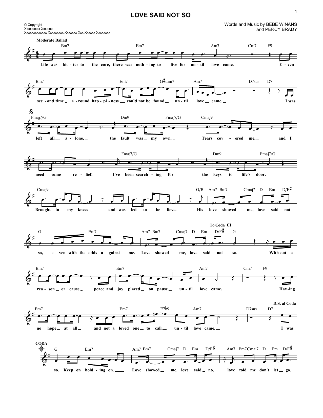 Download or print BeBe and CeCe Winans Love Said Not So sheet music, chords and digital score arranged for Lead Sheet / Fake Book. This Pop score includes 2 page(s).