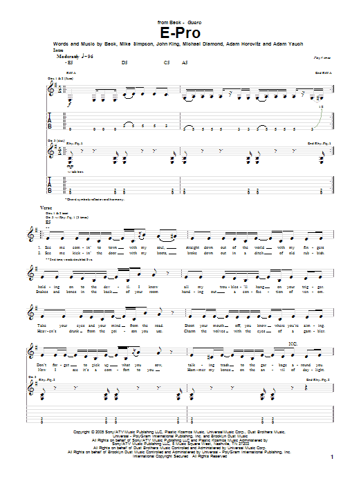 Download or print Beck E-Pro sheet music, chords and digital score arranged for Piano, Vocal & Guitar Chords (Right-Hand Melody). This Alternative score includes 4 page(s).