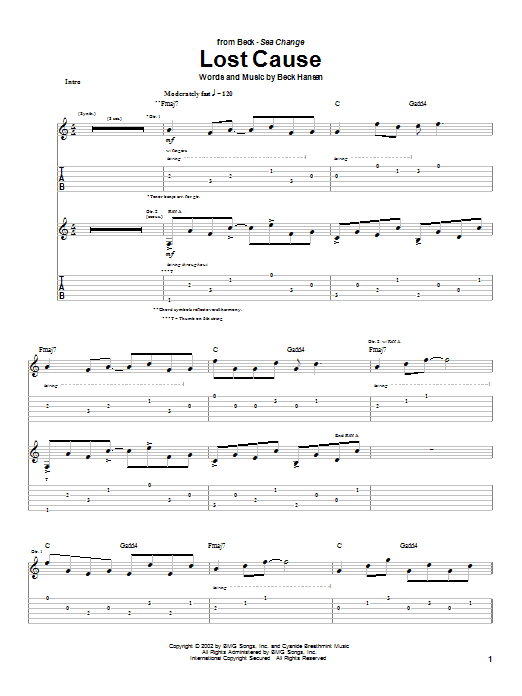 Download or print Beck Lost Cause sheet music, chords and digital score arranged for Guitar Chords/Lyrics. This Rock score includes 2 page(s).