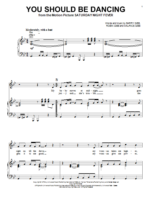 Download or print Bee Gees You Should Be Dancing sheet music, chords and digital score arranged for Guitar Chords/Lyrics. This Pop score includes 2 page(s).
