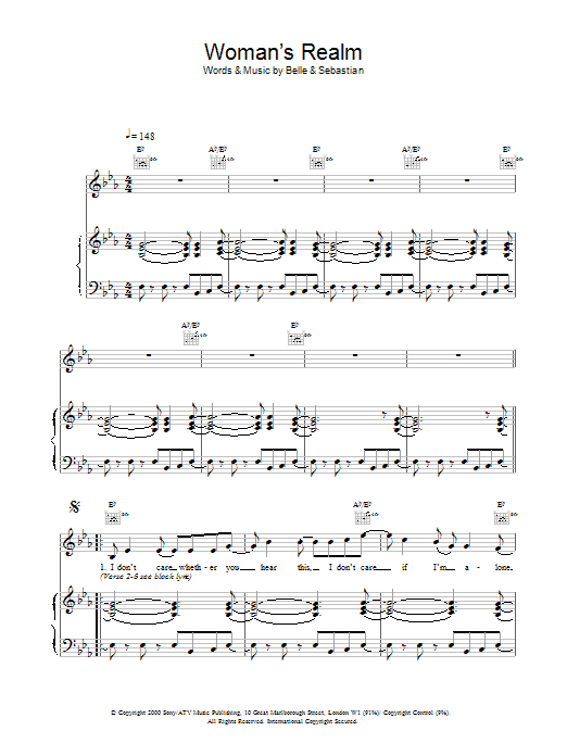 Download or print Belle And Sebastian Woman's Realm sheet music, chords and digital score arranged for Piano, Vocal & Guitar Chords. This Alternative score includes 5 page(s).