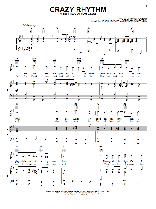 Download or print Ben Bernie Crazy Rhythm sheet music, chords and digital score arranged for Real Book – Melody & Chords. This Jazz score includes 1 page(s).