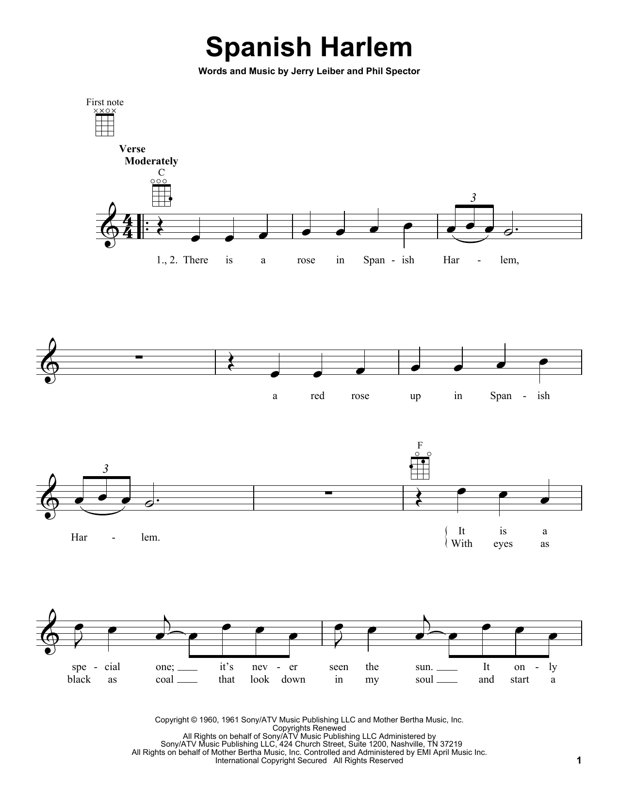 Download or print Ben E. King Spanish Harlem sheet music, chords and digital score arranged for Lead Sheet / Fake Book. This Pop score includes 1 page(s).