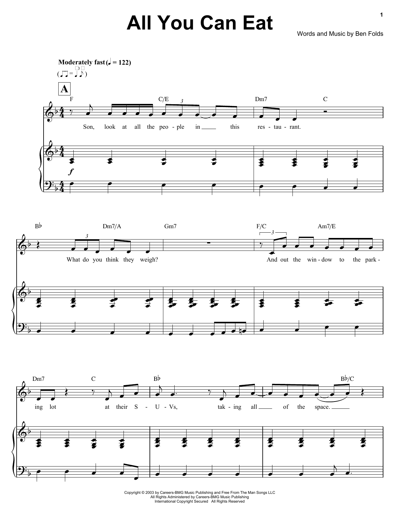 Download or print Ben Folds All You Can Eat sheet music, chords and digital score arranged for Keyboard Transcription. This Pop score includes 9 page(s).