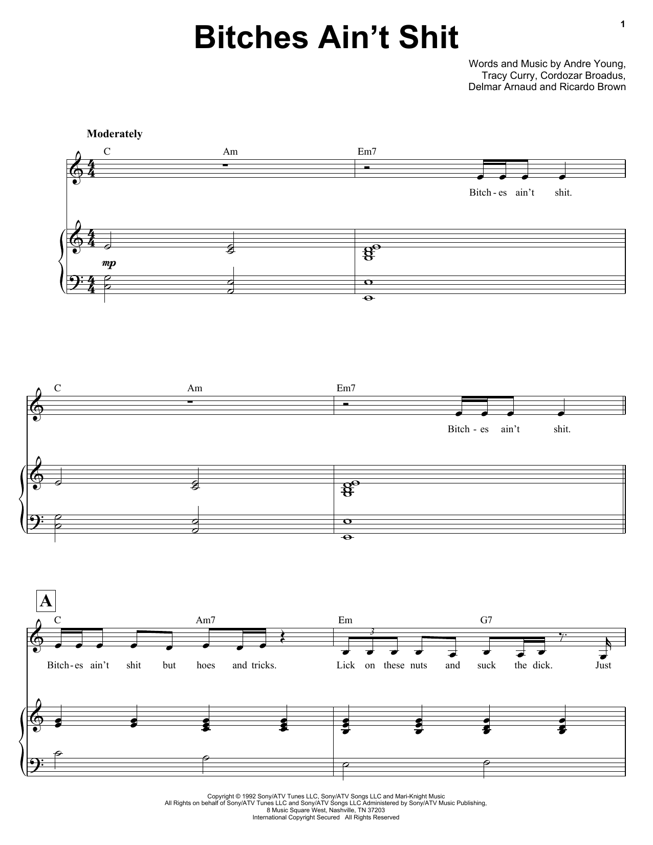 Quick facts Bitches Ain't Shit about digital sheet music