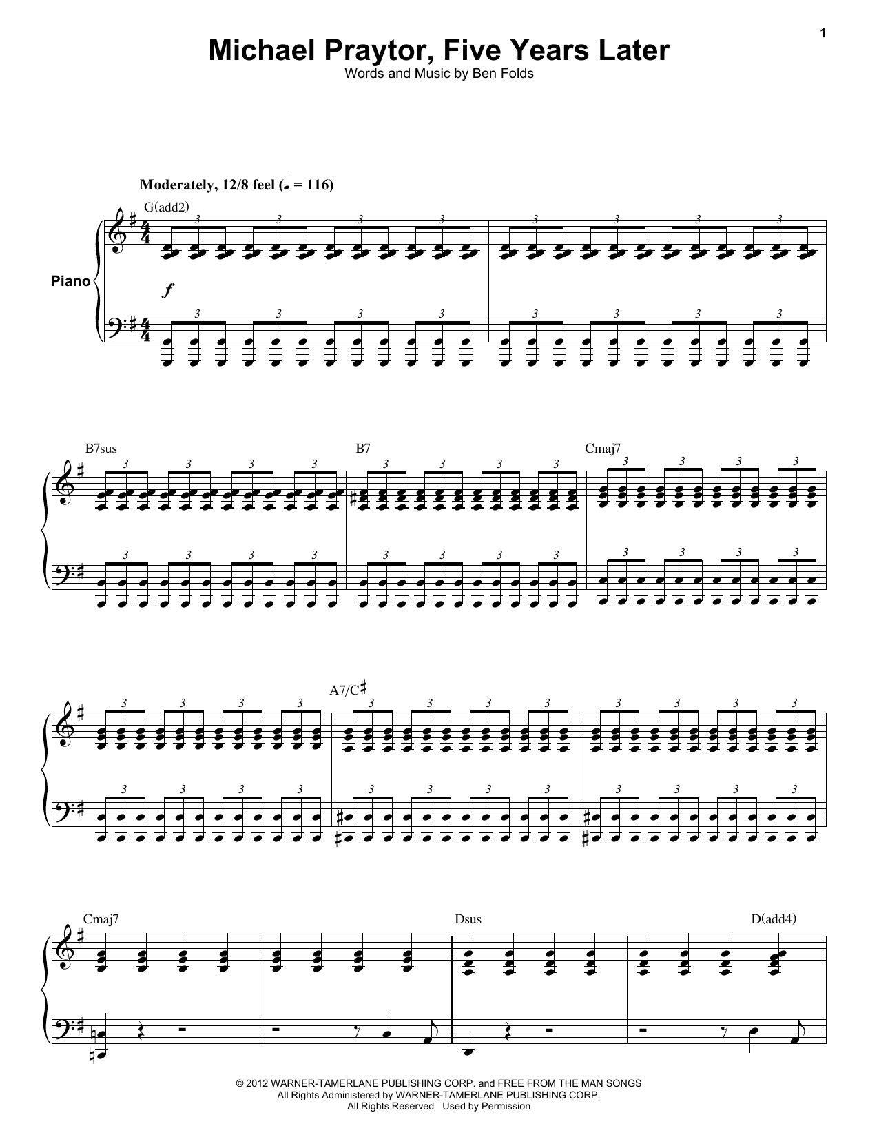Download or print Ben Folds Five Michael Praytor, Five Years Later sheet music, chords and digital score arranged for Keyboard Transcription. This Pop score includes 12 page(s).