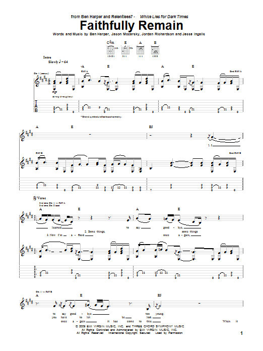 Download or print Ben Harper and Relentless7 Faithfully Remain sheet music, chords and digital score arranged for Guitar Tab. This Pop score includes 5 page(s).