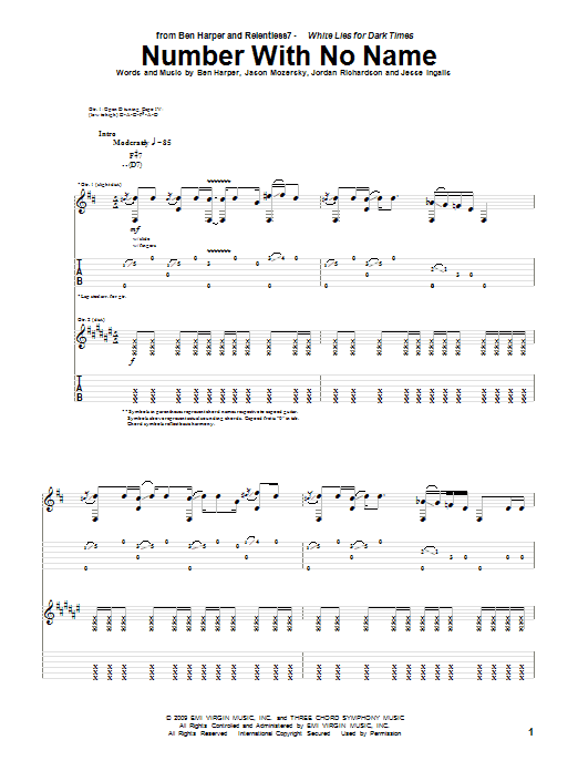 Download or print Ben Harper and Relentless7 Number With No Name sheet music, chords and digital score arranged for Guitar Tab. This Pop score includes 13 page(s).