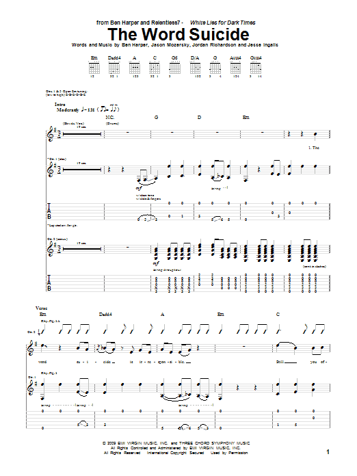 Download or print Ben Harper and Relentless7 The Word Suicide sheet music, chords and digital score arranged for Guitar Tab. This Pop score includes 11 page(s).