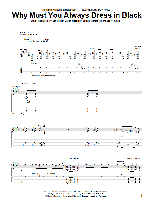 Download or print Ben Harper and Relentless7 Why Must You Always Dress In Black sheet music, chords and digital score arranged for Guitar Tab. This Pop score includes 18 page(s).