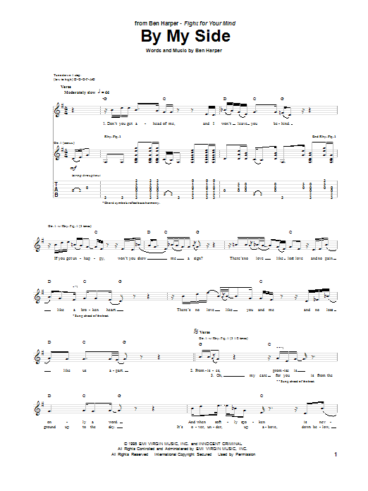 Download or print Ben Harper By My Side sheet music, chords and digital score arranged for Guitar Tab. This Pop score includes 3 page(s).