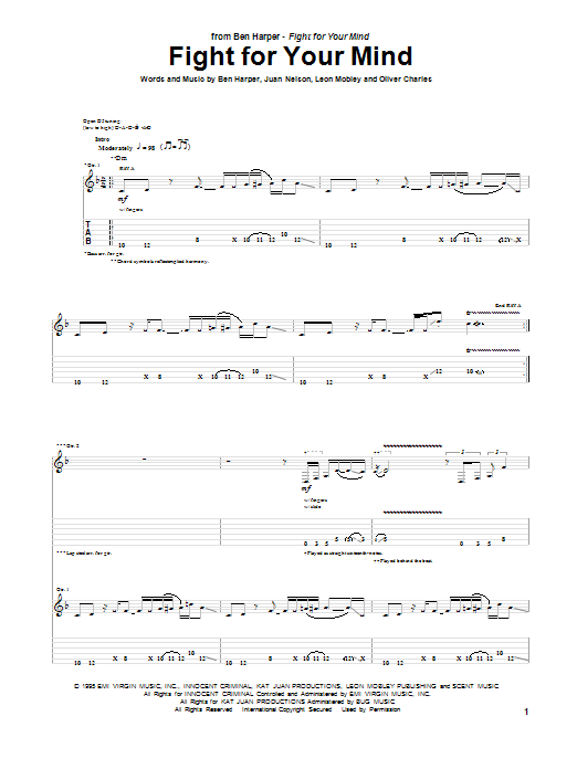 Download or print Ben Harper Fight For Your Mind sheet music, chords and digital score arranged for Guitar Tab. This Pop score includes 7 page(s).