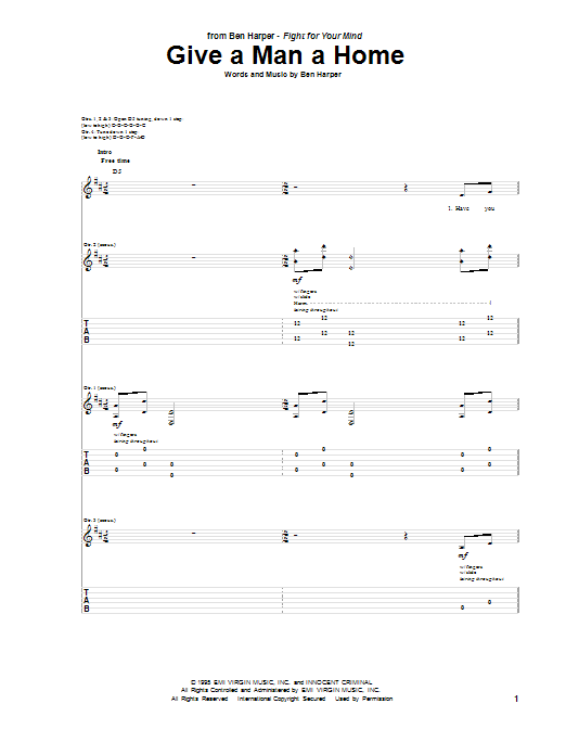 Download or print Ben Harper Give A Man A Home sheet music, chords and digital score arranged for Guitar Tab. This Pop score includes 6 page(s).