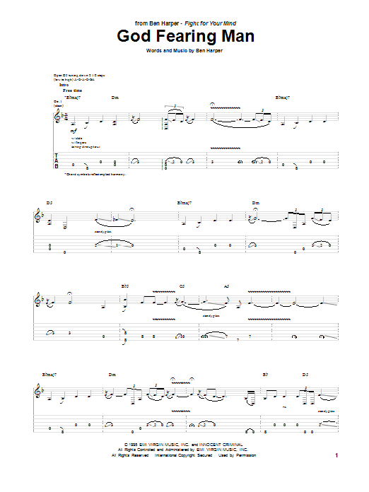 Download or print Ben Harper God Fearing Man sheet music, chords and digital score arranged for Guitar Tab. This Pop score includes 23 page(s).