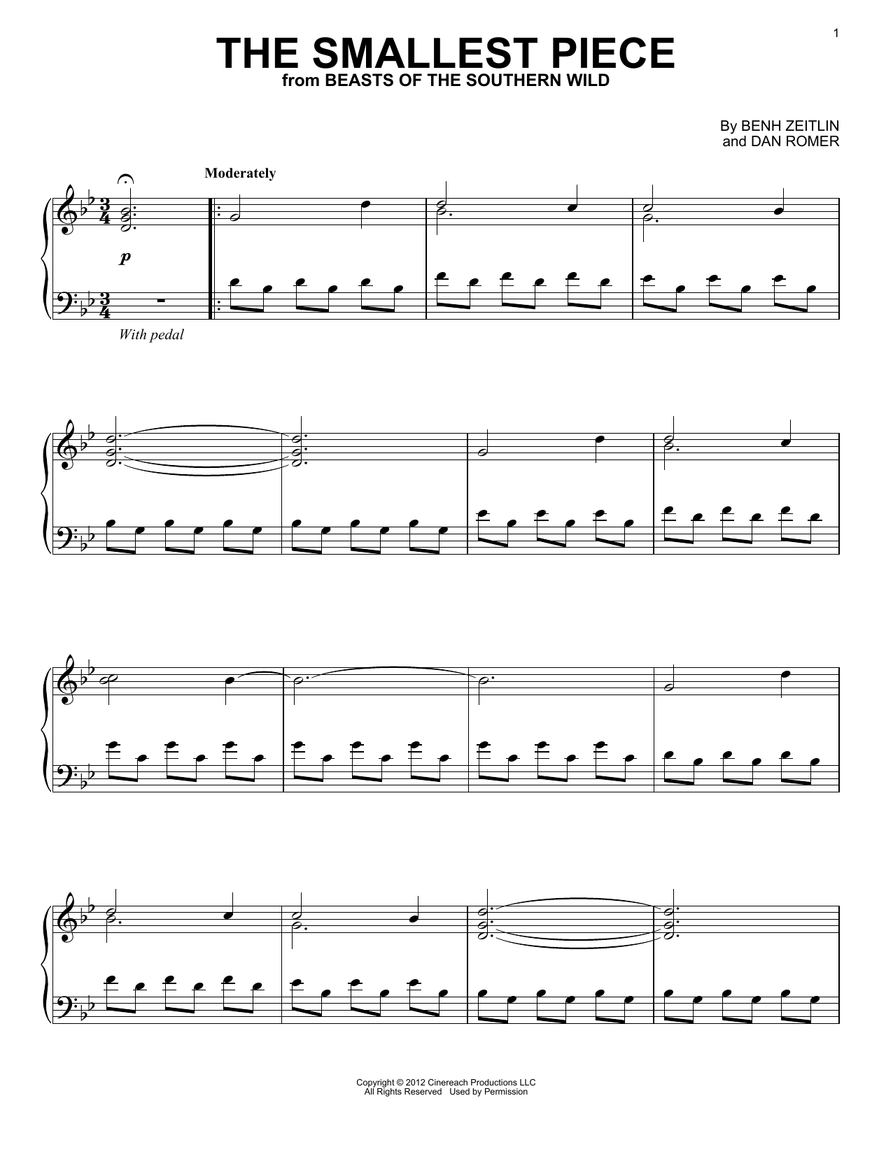 Download or print Benh Zeitlin The Smallest Piece sheet music, chords and digital score arranged for Piano Solo. This Pop score includes 3 page(s).