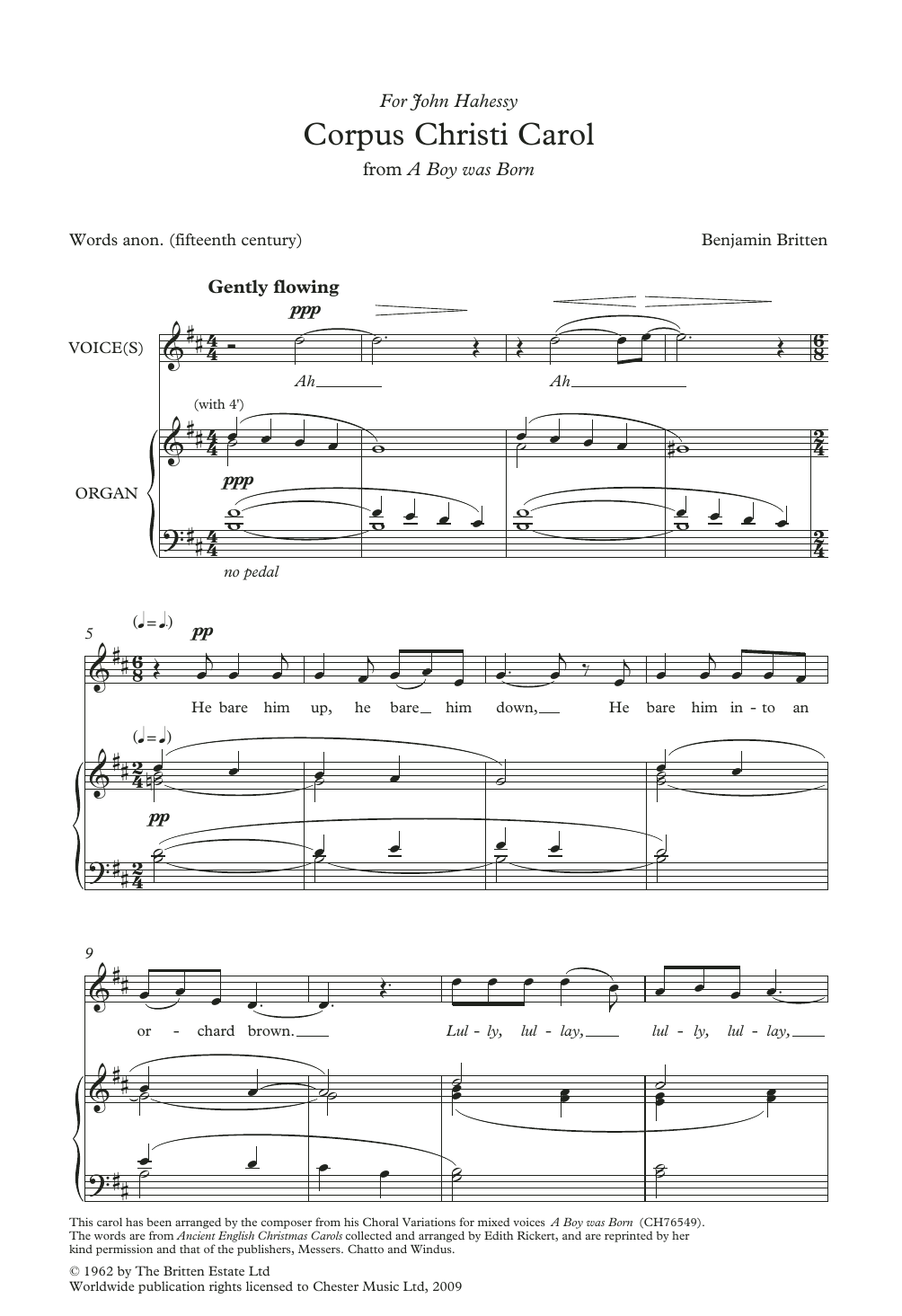 Download or print Benjamin Britten Corpus Christi Carol (from A Boy Was Born) sheet music, chords and digital score arranged for Choir. This Carol score includes 4 page(s).