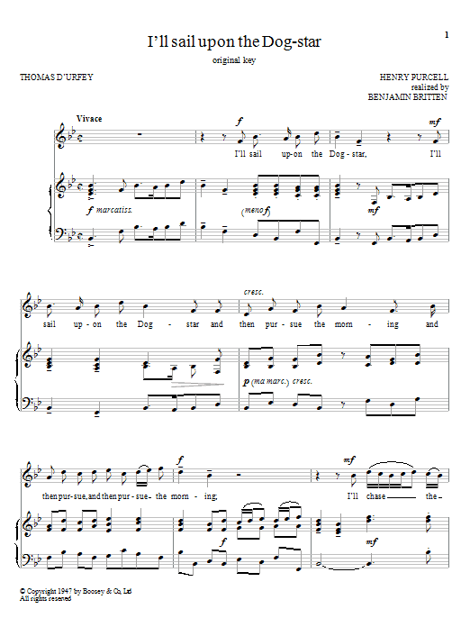 Download or print Benjamin Britten I'll Sail Upon The Dog-Star sheet music, chords and digital score arranged for Piano & Vocal. This Classical score includes 4 page(s).
