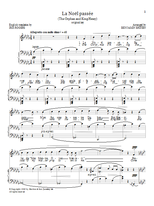 Download or print Benjamin Britten La Noël passée sheet music, chords and digital score arranged for Piano & Vocal. This Classical score includes 6 page(s).