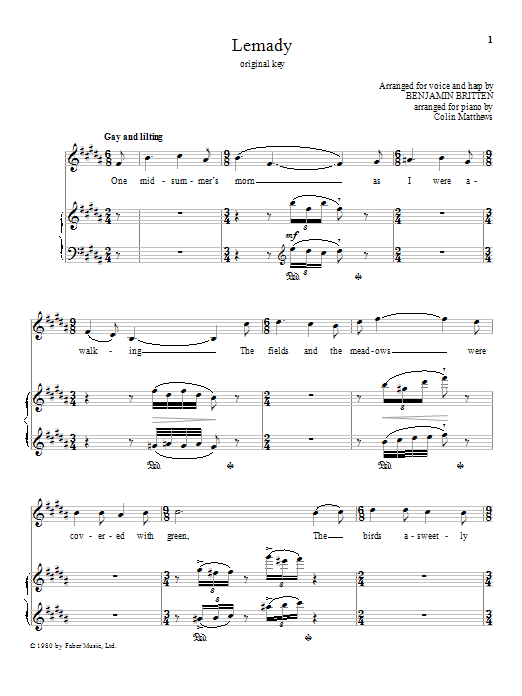 Download or print Benjamin Britten Lemady sheet music, chords and digital score arranged for Piano & Vocal. This Classical score includes 4 page(s).