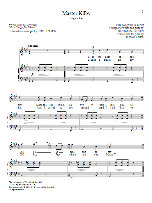 Download or print Benjamin Britten Master Kilby sheet music, chords and digital score arranged for Piano & Vocal. This Classical score includes 3 page(s).