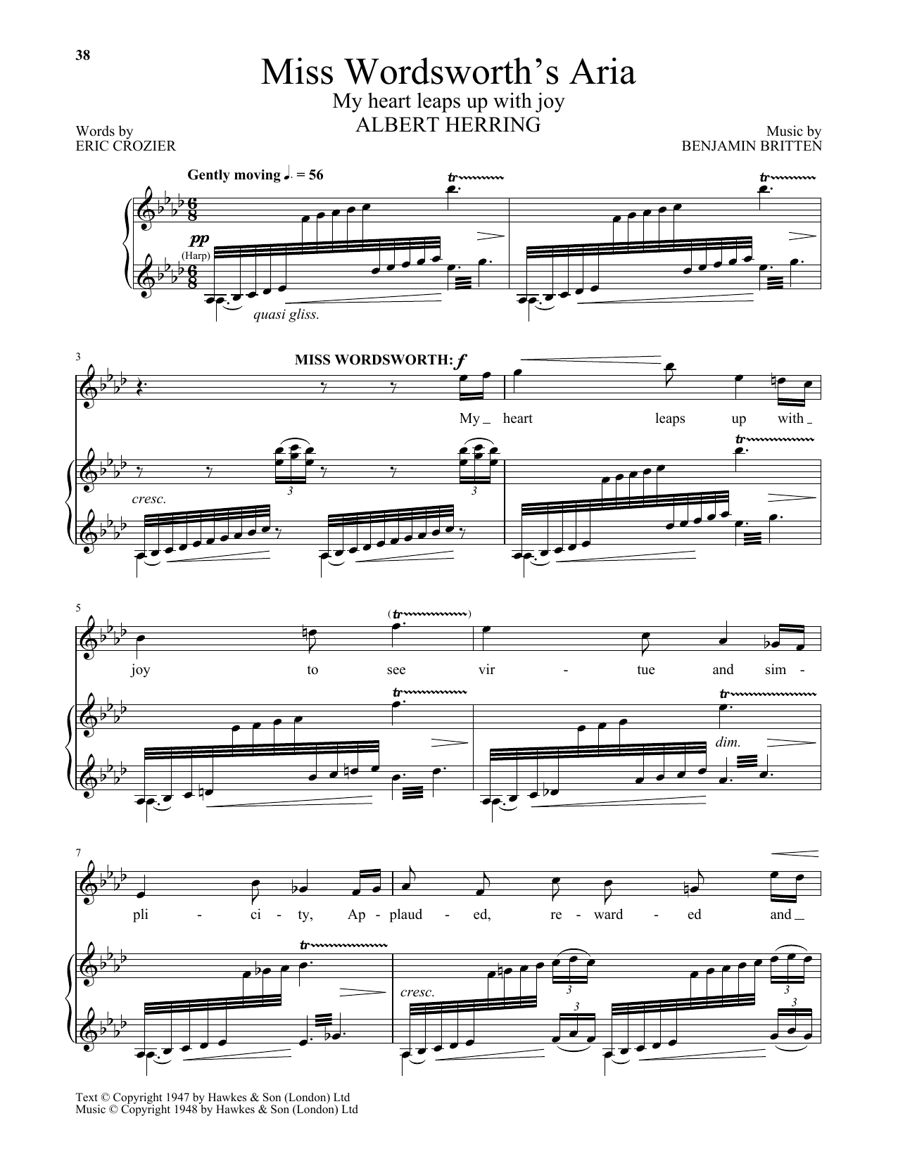 Quick facts Miss Wordsworth's Aria (My Heart Leaps Up With Joy) (from Albert Herring) about digital sheet music