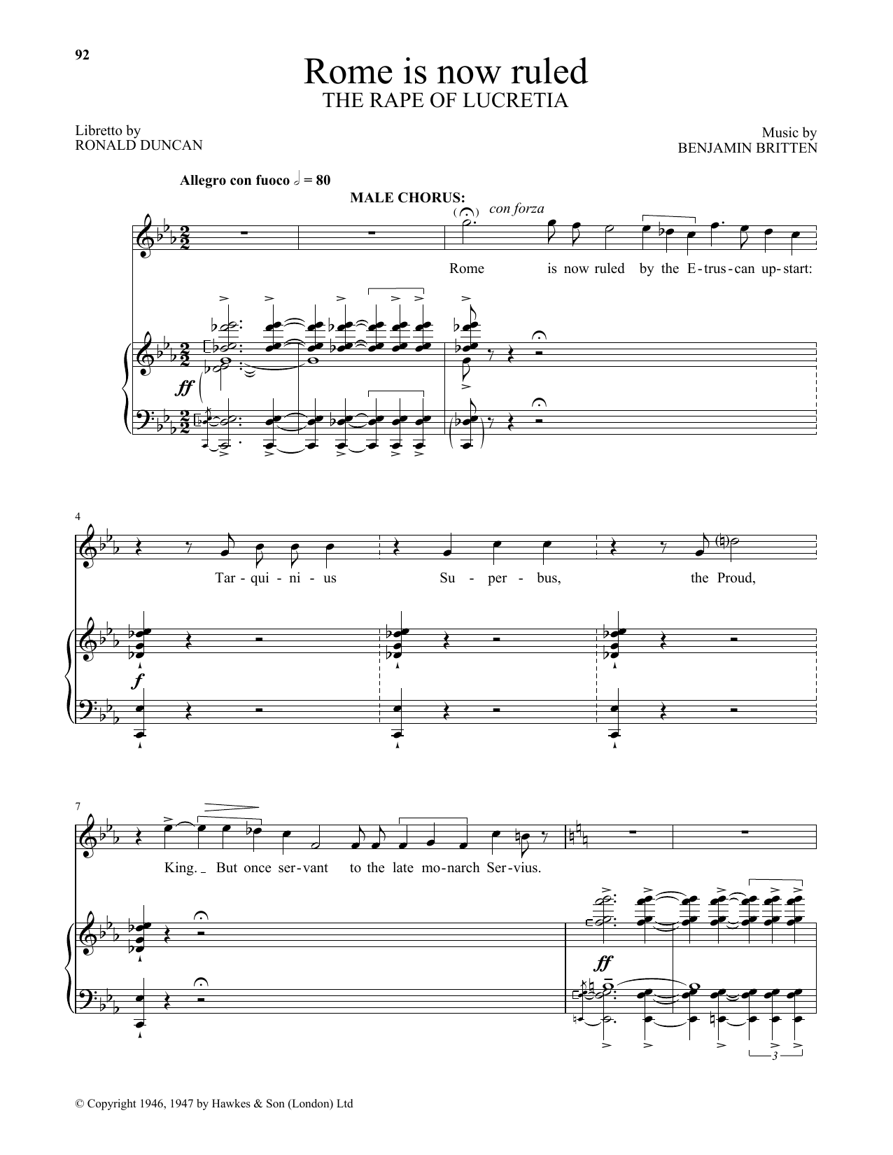 Download or print Benjamin Britten Rome is now ruled (from The Rape Of Lucretia) sheet music, chords and digital score arranged for Piano & Vocal. This Classical score includes 5 page(s).