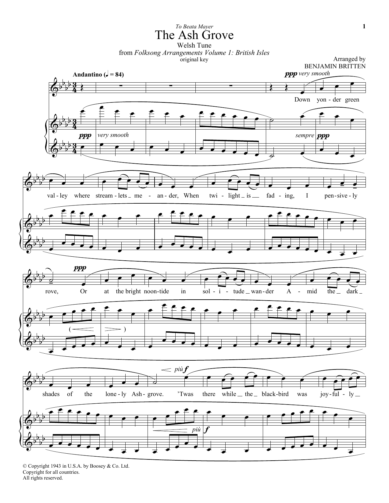 Download or print Benjamin Britten The Ash Grove sheet music, chords and digital score arranged for Piano & Vocal. This Classical score includes 4 page(s).