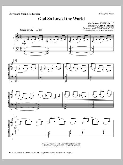 Quick facts God So Loved The World Chamber Orchestra - Keyboard String Reduction about digital sheet music