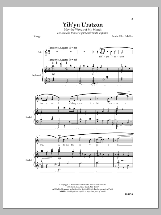 Download or print Benjie Ellen Schiller Yih'yu L'ratzon sheet music, chords and digital score arranged for 2-Part Choir. This Sacred score includes 7 page(s).
