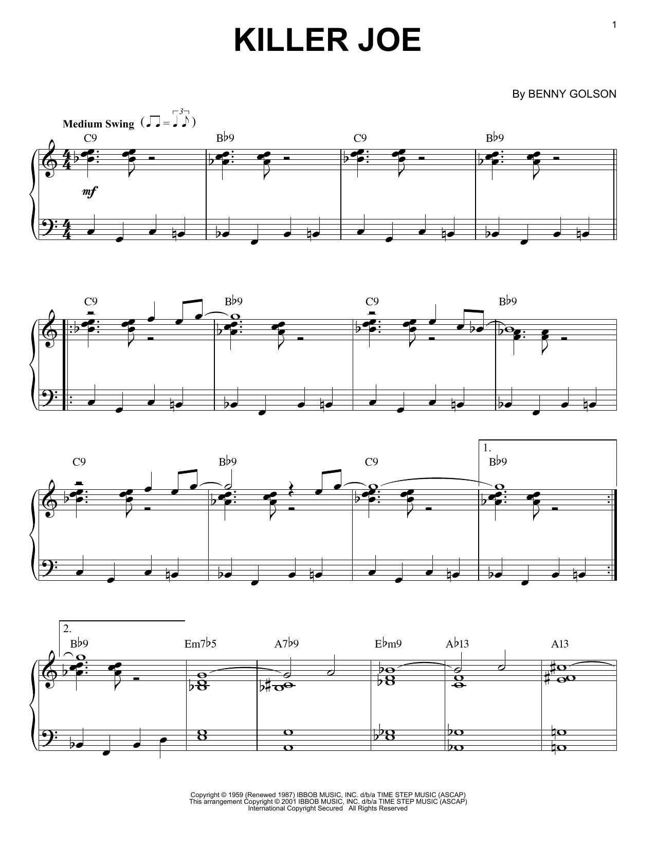 Download or print Benny Golson Killer Joe sheet music, chords and digital score arranged for Piano Solo. This Jazz score includes 3 page(s).