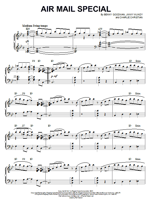 Download or print Benny Goodman Air Mail Special sheet music, chords and digital score arranged for Piano Solo. This Jazz score includes 9 page(s).