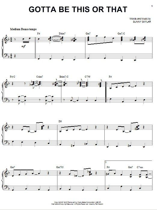 Download or print Benny Goodman Gotta Be This Or That sheet music, chords and digital score arranged for Piano & Vocal. This Jazz score includes 7 page(s).