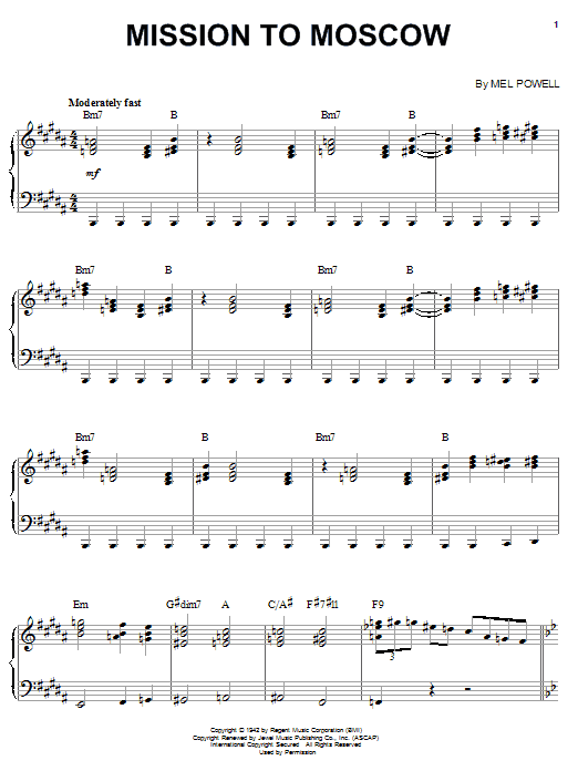 Download or print Benny Goodman Mission To Moscow sheet music, chords and digital score arranged for Piano Solo. This Jazz score includes 10 page(s).