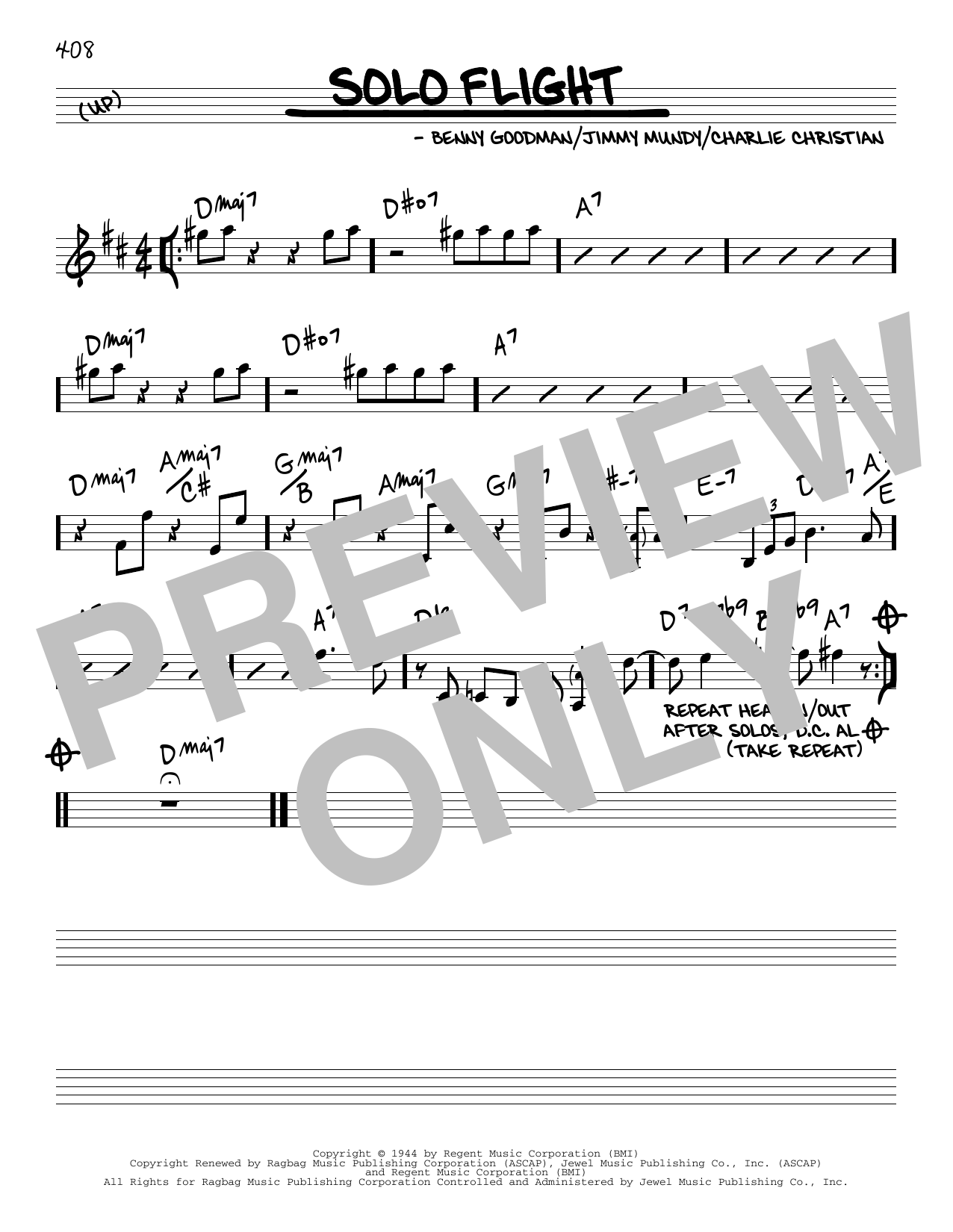 Download or print Benny Goodman Solo Flight sheet music, chords and digital score arranged for Real Book – Melody & Chords. This Jazz score includes 1 page(s).