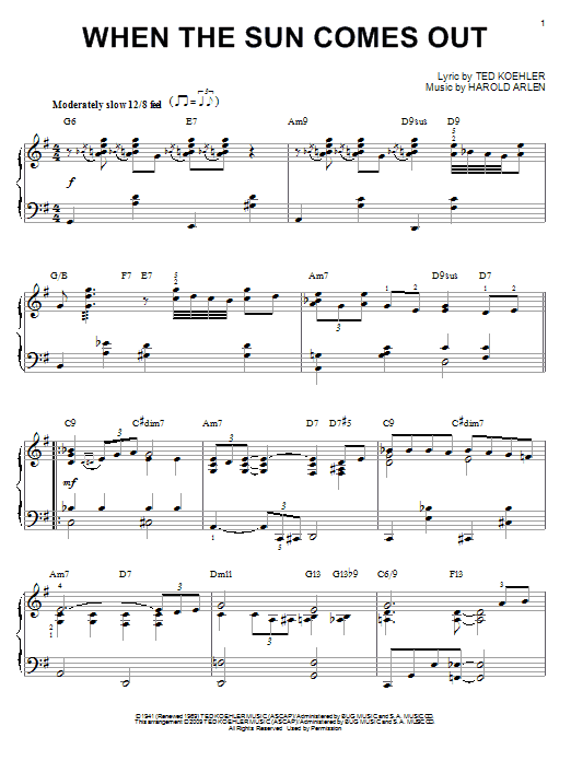 Download or print Benny Goodman When The Sun Comes Out (arr. Brent Edstrom) sheet music, chords and digital score arranged for Piano Solo. This Jazz score includes 4 page(s).