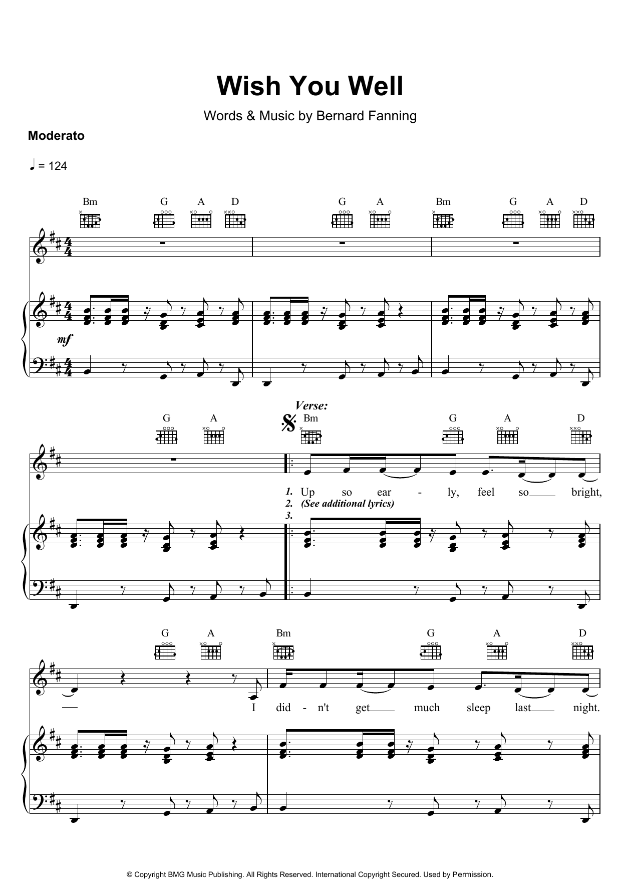 Download or print Bernard Fanning Wish You Well sheet music, chords and digital score arranged for Easy Piano. This Pop score includes 4 page(s).