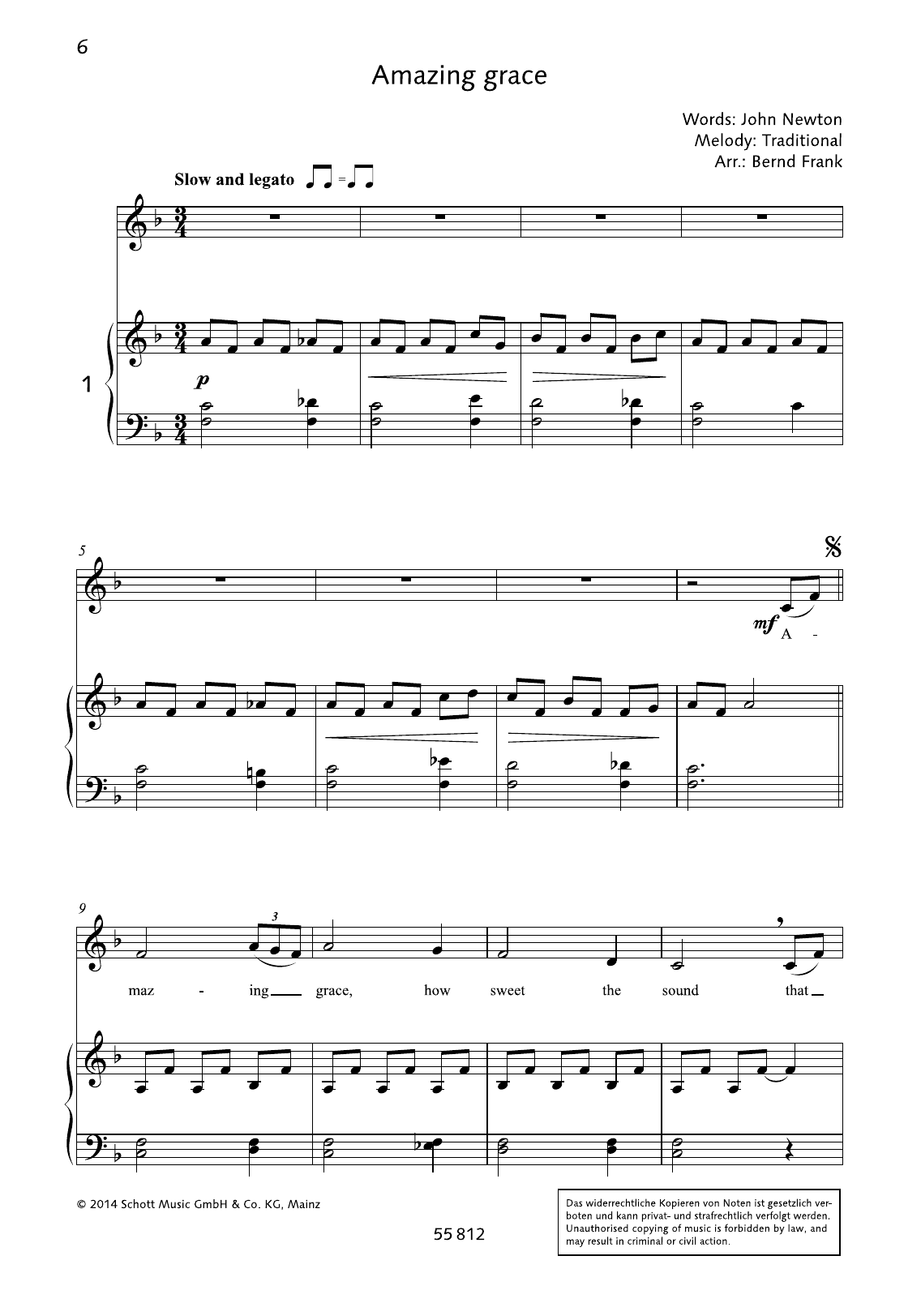 Download or print Bernd Frank Amazing Grace sheet music, chords and digital score arranged for Piano & Vocal. This Gospel score includes 2 page(s).