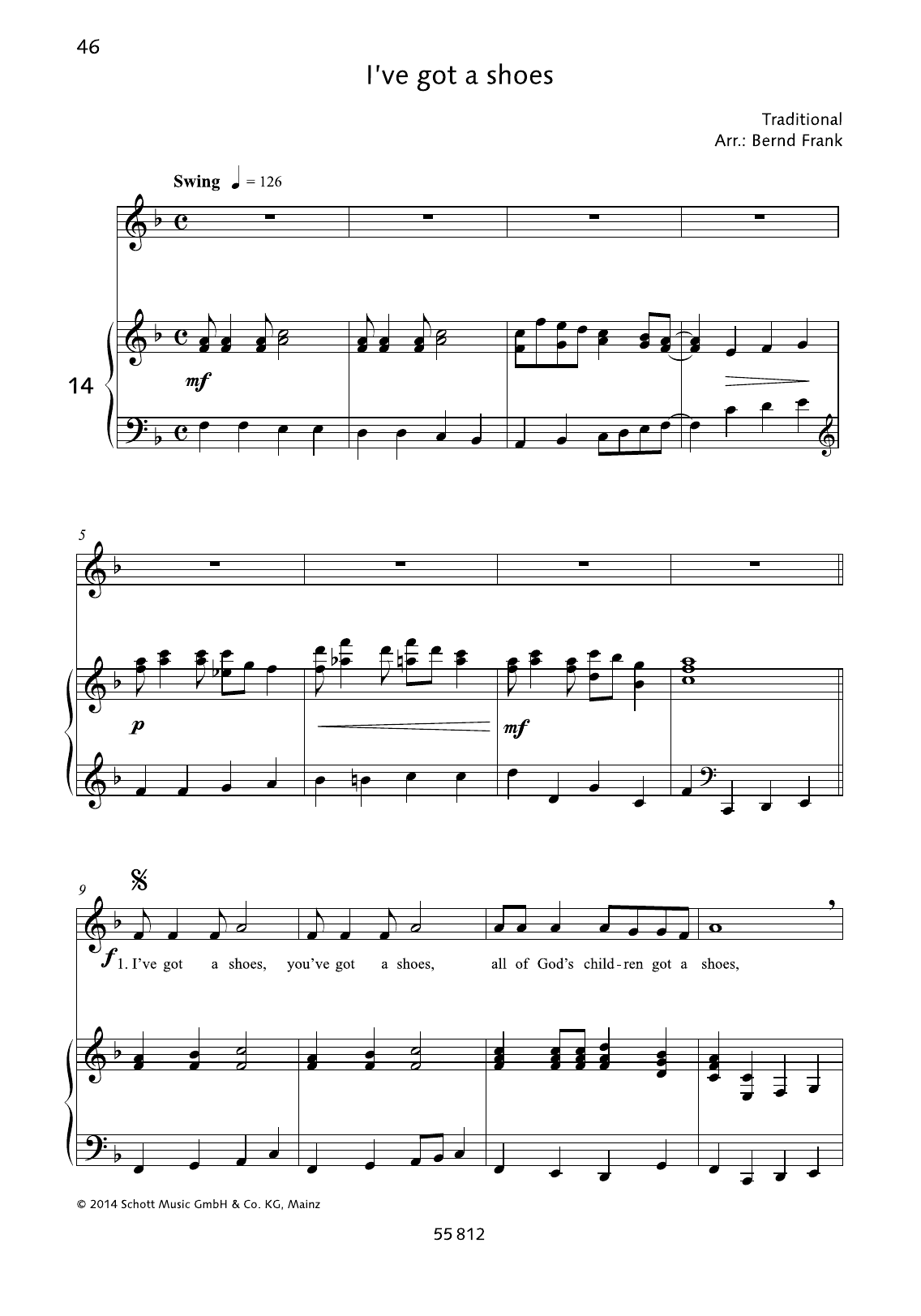 Download or print Bernd Frank I've got a shoes sheet music, chords and digital score arranged for Piano & Vocal. This Gospel score includes 3 page(s).